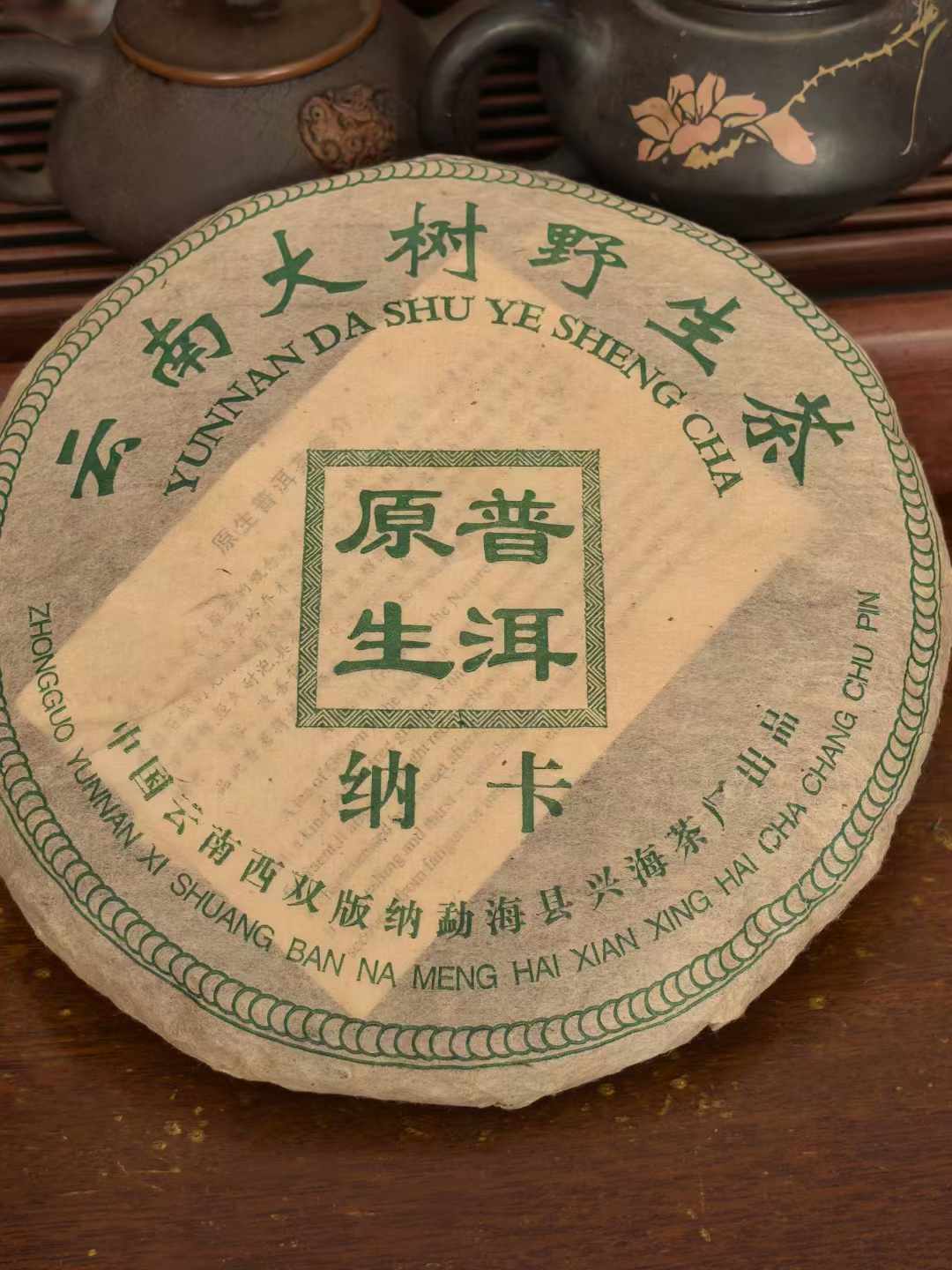 The 2004 Xinghai Tea Factory Na Ka (also known as NaKa) Green Cake is a premium Pu-erh tea made from wild tree leaves sourced from Yunnan. Specifically, this Na Ka Green Cake, with a specification of 357 grams per cake and 7 cakes per set, was customized by Mr. Li Aijun. It was crafted with meticulous care at Xinghai Tea Factory using wild tree tea leaves from Na Ka as its raw material.