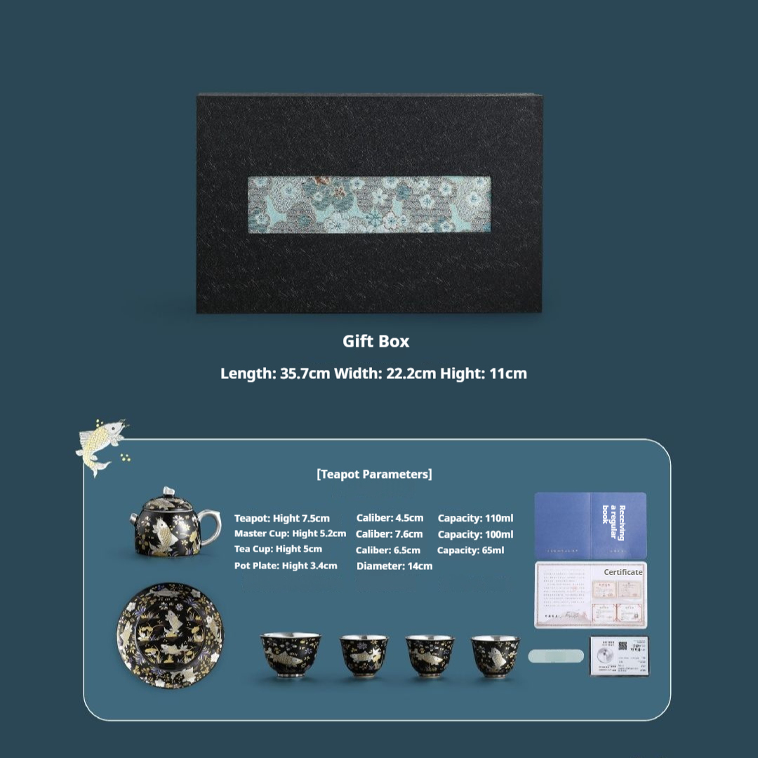 Home Tea Ware Silver Gilded Silver Tea Set – Gold and Silver Inlaid Fish and Algae Pattern
