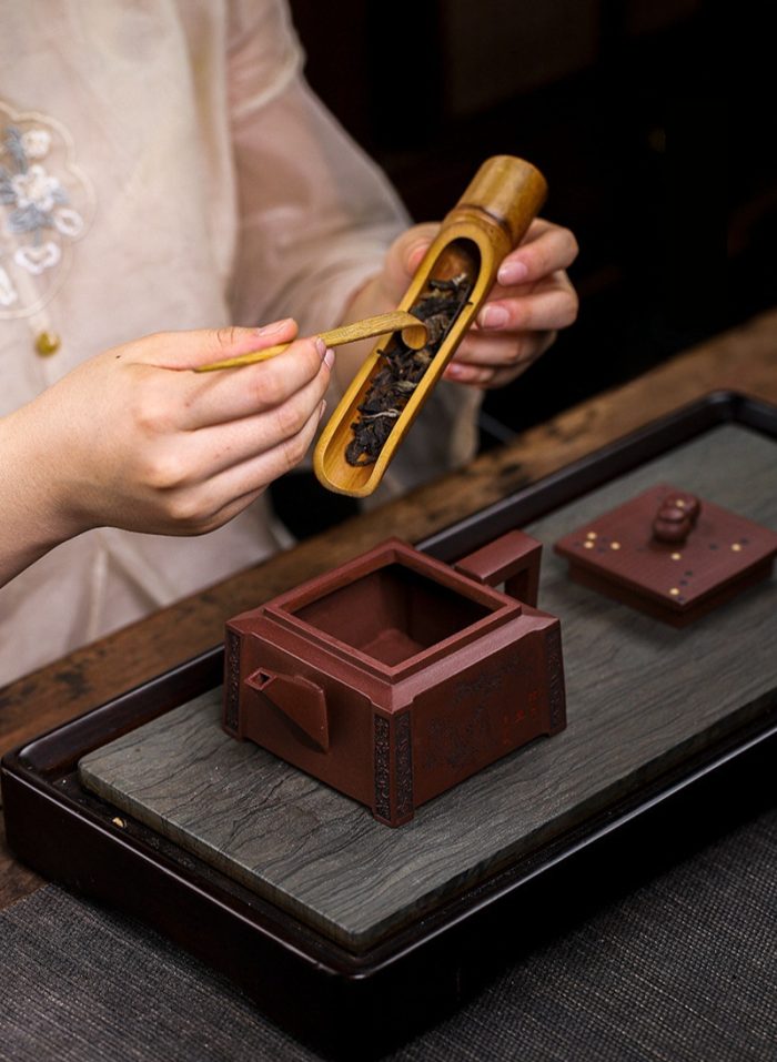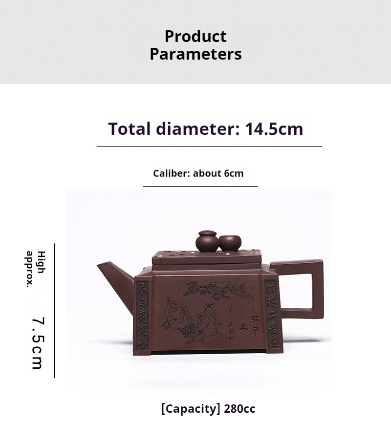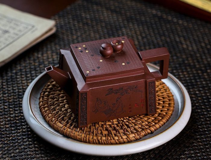 Infused with the essence of traditional Chinese board games, this Yixing purple clay teapot brings to life the harmony between strategic thought and peaceful reflection. Handcrafted with precision, the teapot embodies the deep, rich heritage of Yixing craftsmanship, known for its porous clay that enhances the flavor of tea. The chess motif carved into the clay not only adds a playful touch but symbolizes the balance of intellect and relaxation that tea culture represents. A perfect addition for tea enthusiasts who appreciate both artistry and intellect.